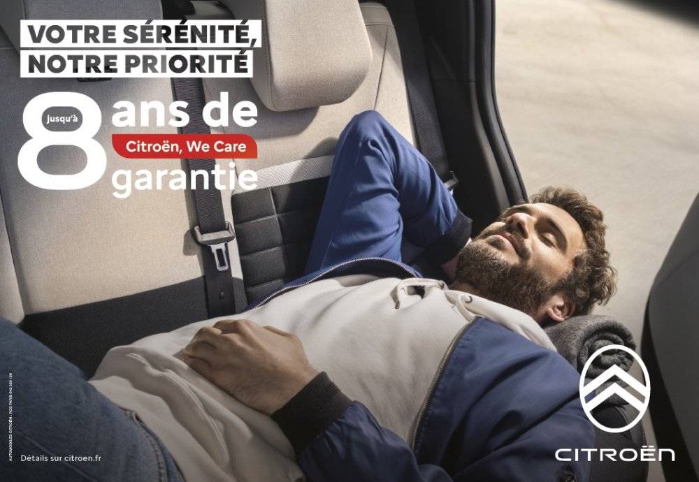 Chez Citroën, nous savons qu’acheter une voiture est un engagement important. C’est pourquoi nous lançons Citroën We Care, une garantie additionnelle qui vous accompagne jusqu’à 8 ans ou 160 000 km.
