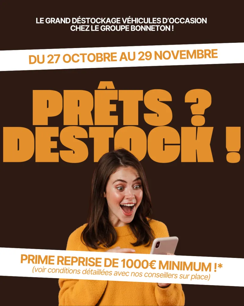 Le GROUPE BONNETON est ravi d'annoncer son grand déstockage pour tous ceux qui envisagent d’acquérir un véhicule !